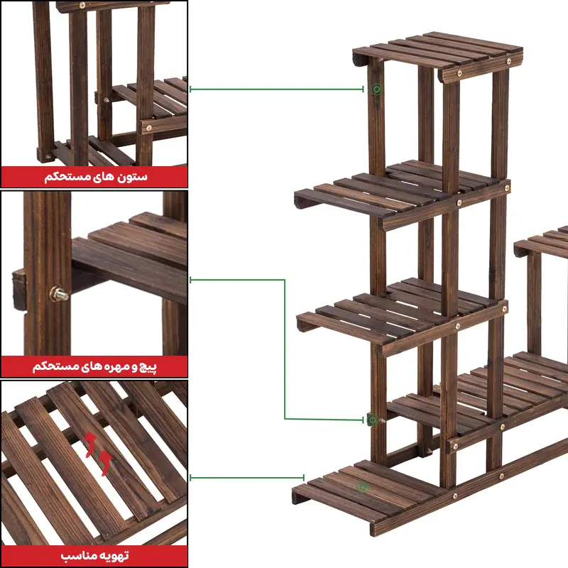 نصب استند چوبی گل و گیاه به راحتی انجام میشود. مراحل نصب به شرح زیر است: