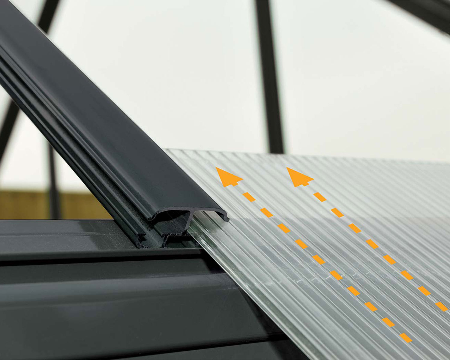 پنجره دستی تعبیه شده در سقف به شما این امکان را میدهد که بر روی دما و رطوبت فضای داخل گلخانه در روز های گرم تابستان کنترل داشته باشید.
