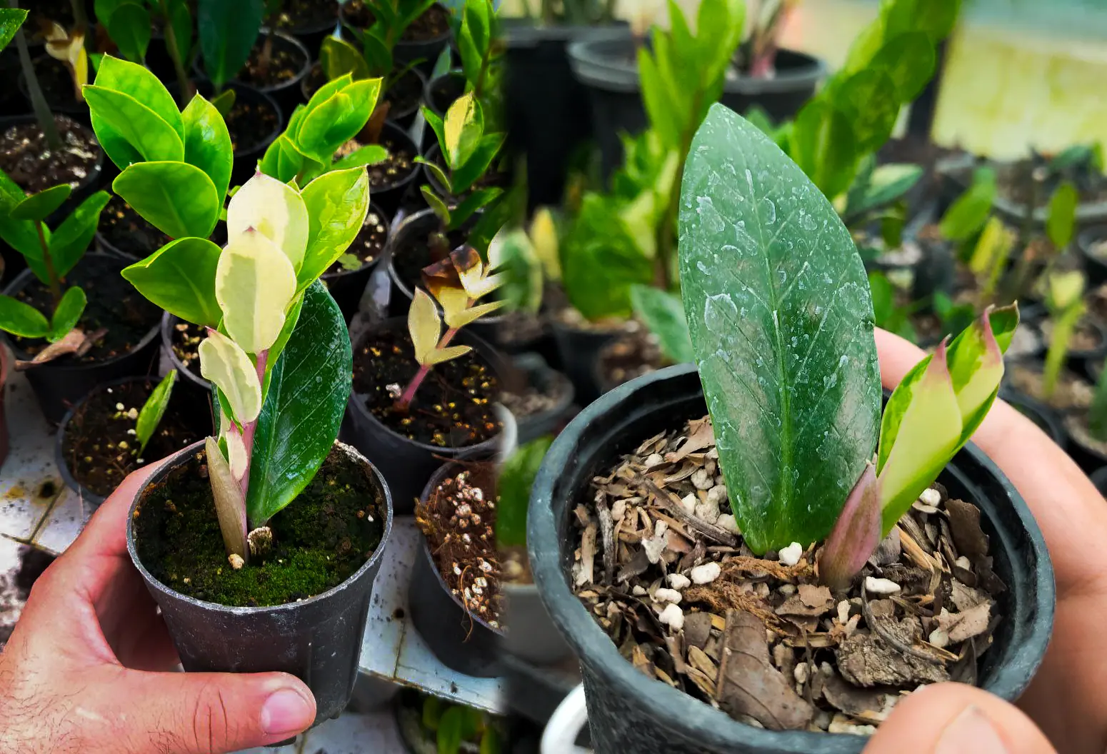 همانطور که میدانید کلا خانواده زاموفیلیا ها با توجه به فرم و سایز برگ به دو گونه هلندی و تایلندی شناخته میشوند که گونه های تایلندی برگی درشت و ضخیم تر بهمراه حالت چرمی شکل دارند که به دلیل بزرگ تر بودن سطح برگ سرعت و کیفیت پاجوشدهی این گونه نسبت به مدل هلندی بالاتر هست.